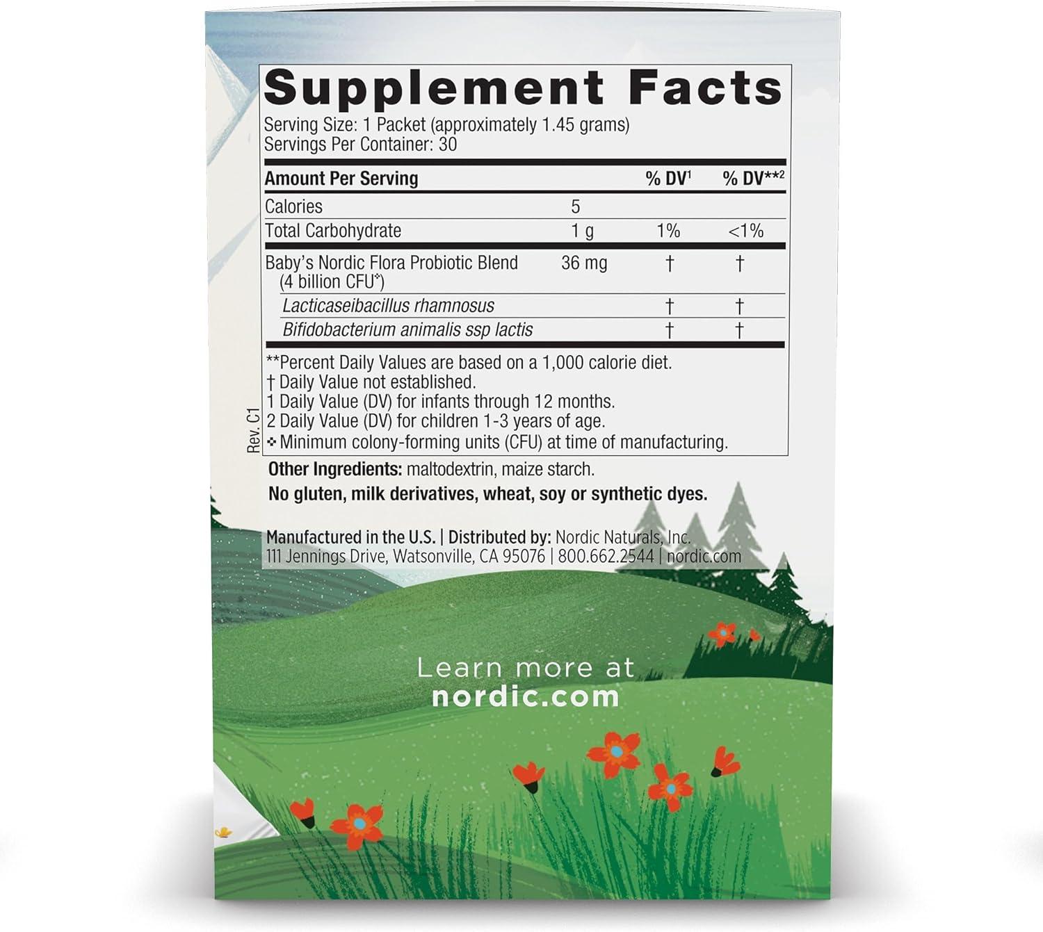 PROBIOTICS FOR KIDS – Baby’s Nordic Flora Probiotic Powder contains 4 billion CFU of two widely researched probiotic strains that are shown to be safe and effective for developing babies and young children.