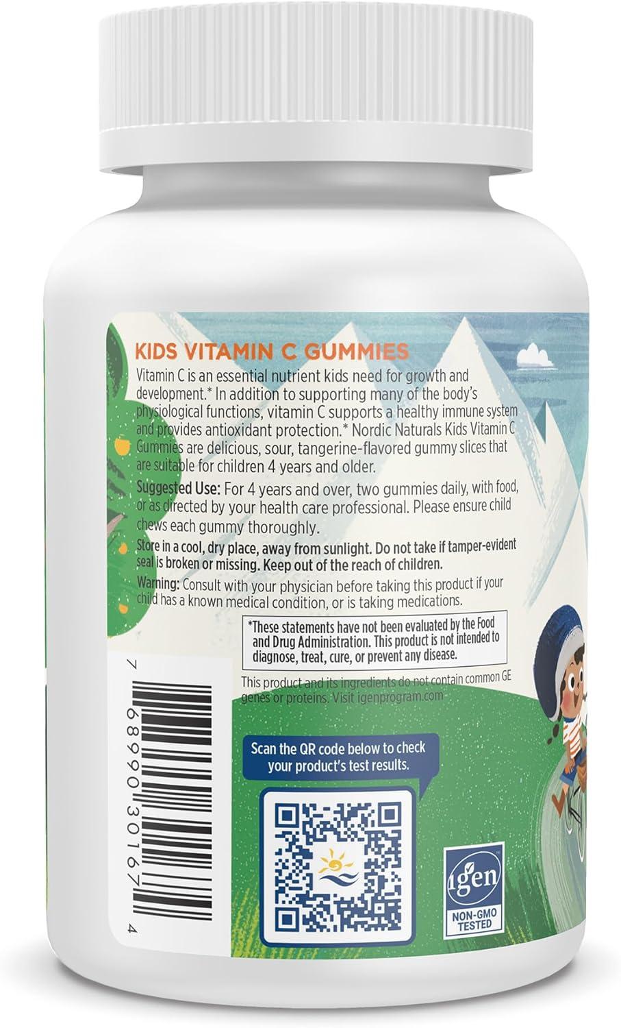 Nordic Naturals Kids Vitamin C Gummies – Tangy Tangerine – 60 Gummies – Vegan Vitamin C Supplement – Children’s Immunity and Antioxidant Support – 250 mg per Serving – 30 Servings(60 Count (Pack of 2))
