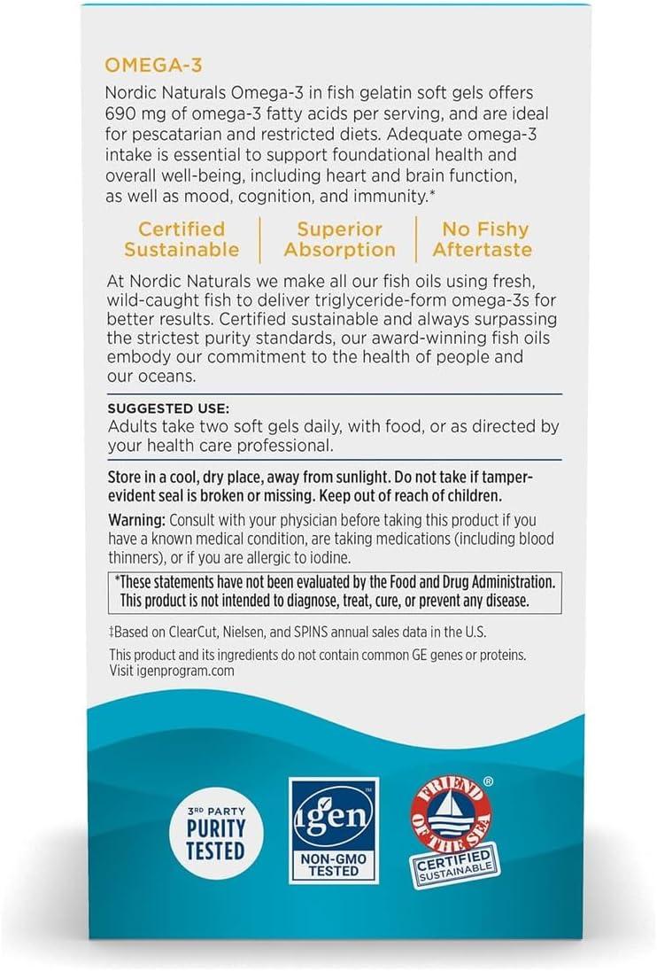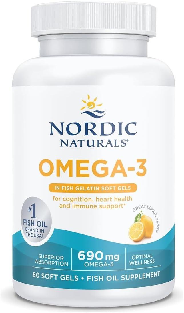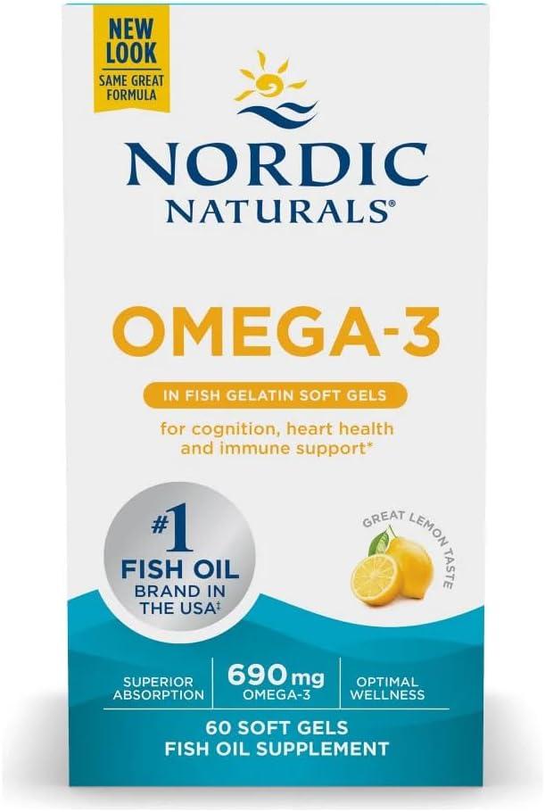 Nordic Naturals Omega-3 in Fish Gelatin, Lemon Flavor – 60 Fish Gels – 690 mg Omega-3 – Fish Oil – EPA & DHA – Immune Support, Brain & Heart Health, Optimal Wellness – Non-GMO – 30 Servings(Standard Packaging)
