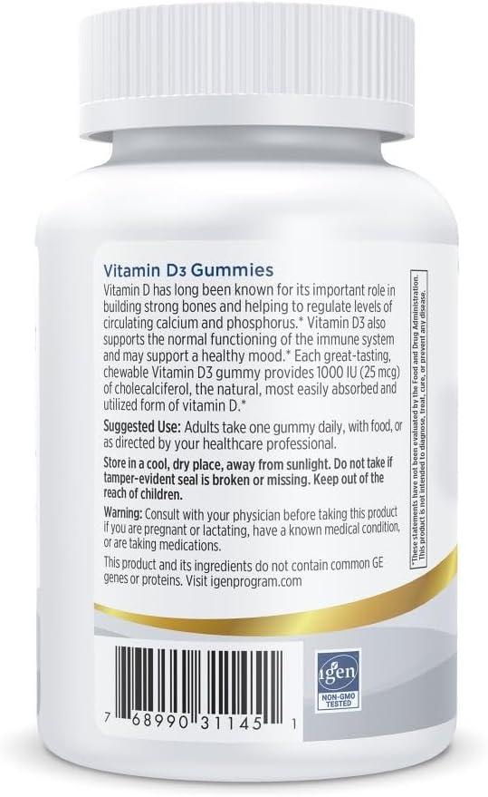 BETTER ABSORPTION – Each great-tasting, chewable Vitamin D3 gummy provides 1000 IU (25 mcg) of cholecalciferol, the natural, most easily absorbed and utilized form of vitamin D. Pro Vitamin D3 Gummies have a great wild berry flavor.