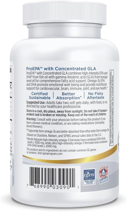 EXCEPTIONALLY HIGH CONCENTRATE – ProEPA with Concentrated GLA offers an exceptionally high concentrate of omega-3 EPA and the beneficial omega-6 gamma-linolenic acid (GLA). The added DHA provides comprehensive essential fatty acid support.
