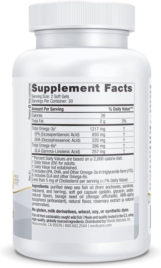 Nordic Naturals ProEPA with Concentrated GLA, Lemon – 60 Soft Gels – 1217 mg Omega-3 + 257 mg GLA – Heart, Neurological & Immune Support, Healthy Skin – Non-GMO – 30 Servings