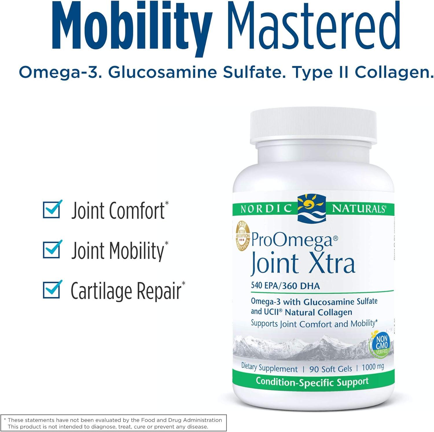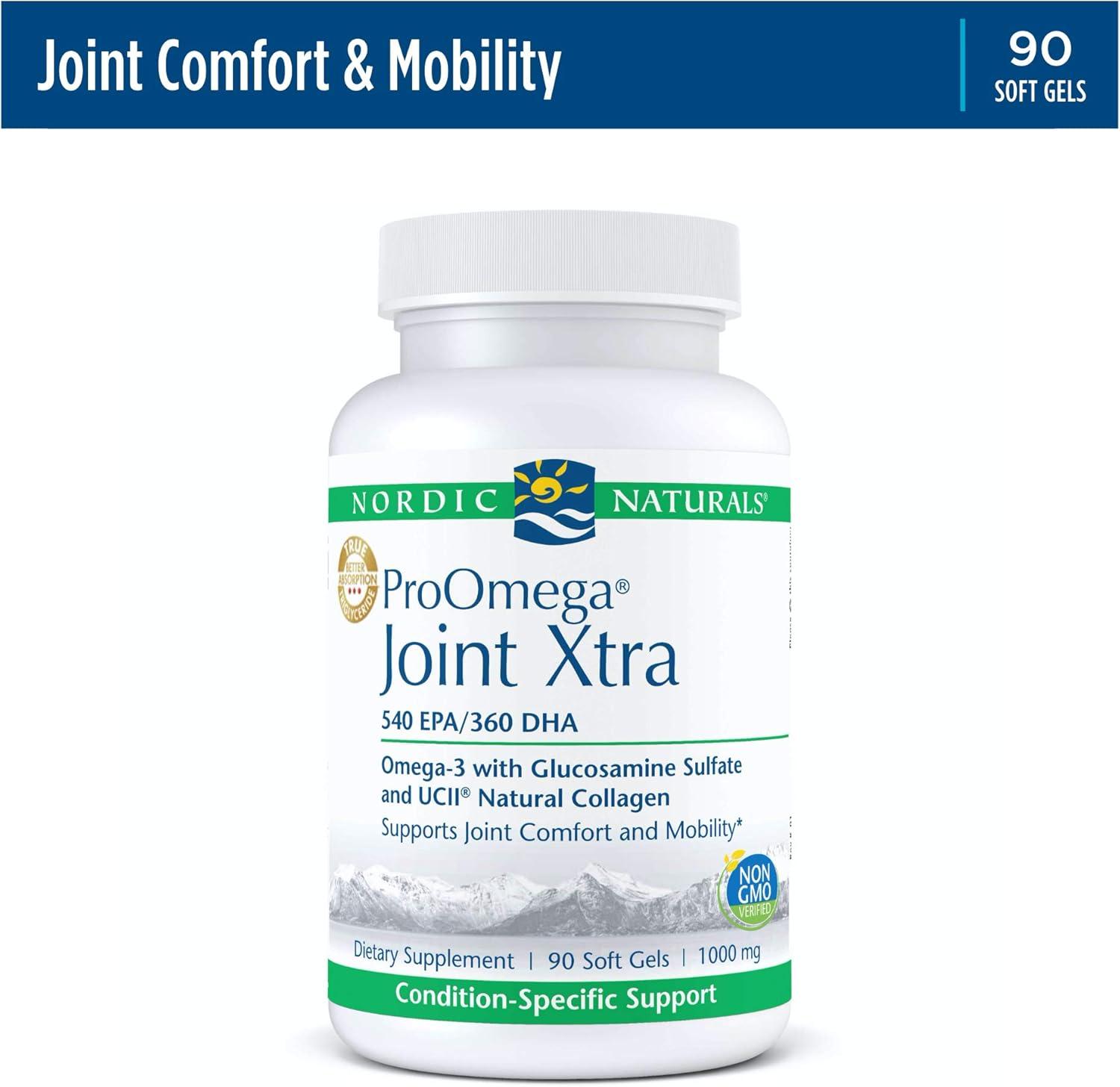 Nordic Naturals ProOmega Joint Xtra – Fish Oil, 540 mg EPA, 360 mg DHA, 1500 mg Glucosamine Sulfate, 40 mg UC-II Natural Collagen, Support for Joint Comfort and Mobility*, 90 Soft Gels