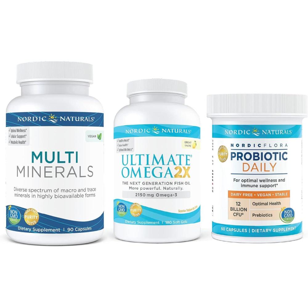 Nordic Naturals Starter Pack – Multi Minerals, Ultimate Omega 2X, Nordic Flora Probiotic Daily