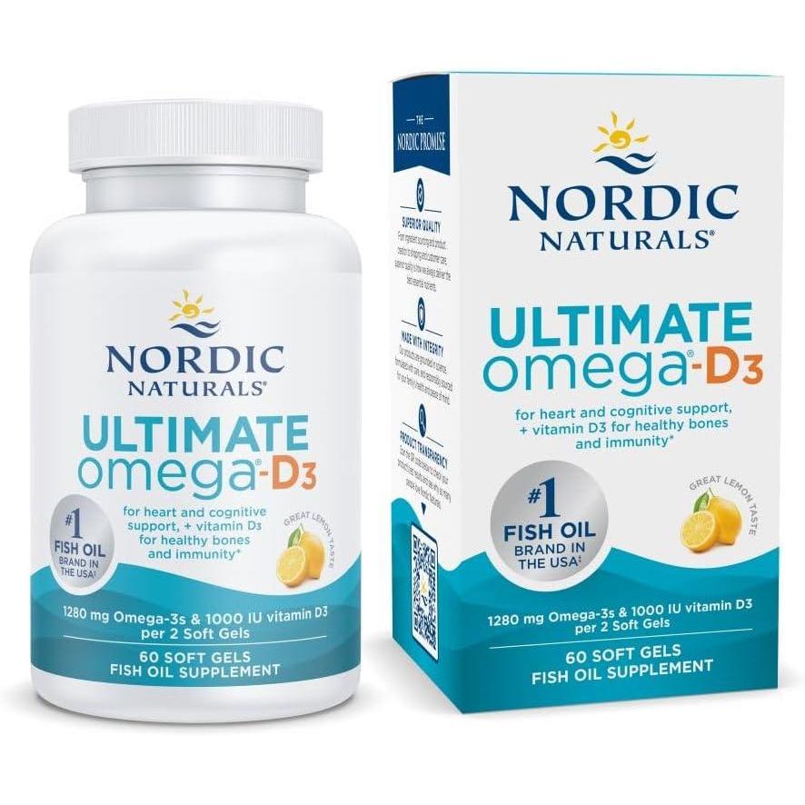 Nordic Naturals Ultimate Omega-D3, Lemon Flavor – 120 Soft Gels – 1280 mg Omega-3 + 1000 IU Vitamin D3 – EPA & DHA – Promotes Brain, Heart, & Immune Health – 60 Servings(Lemon)
