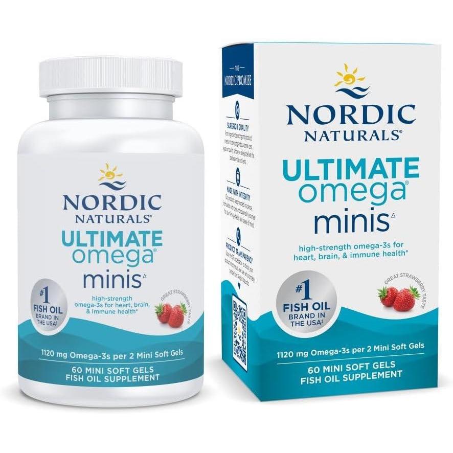 Nordic Naturals Ultimate Omega Minis, Strawberry Flavor – 60 Minis Soft Gels – 1120 mg Omega-3 – High-Potency Fish Oil Supplement – EPA & DHA – Promotes Brain & Heart Health – 30 Servings