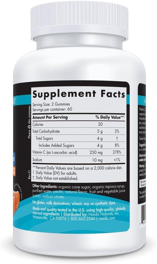 Nordic Naturals Vitamin C Gummies Sport, Tart Tangerine – 120 Gummies – 250 mg Vitamin C – Antioxidant Protection – NSF Certified – Non-GMO, Vegan – 60 Servings(1 Count (Pack of 240))