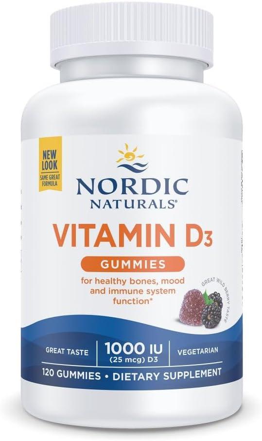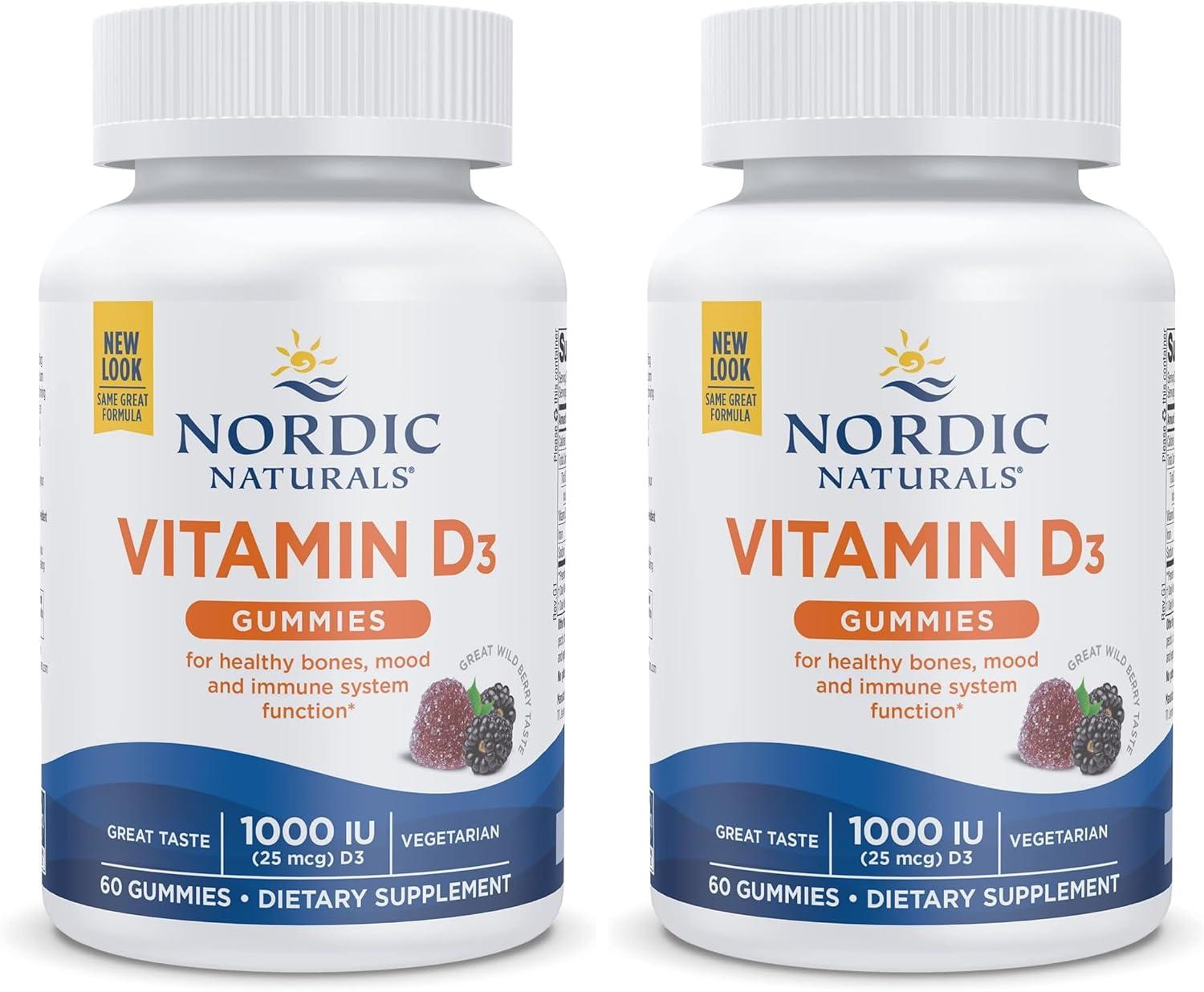Nordic Naturals Vitamin D3 Gummies, Wild Berry – 60 Gummies – 1000 IU Vitamin D3 – Great Taste – Healthy Bones, Mood & Immune System Function – Non-GMO – 60 Servings(Wild Berry)