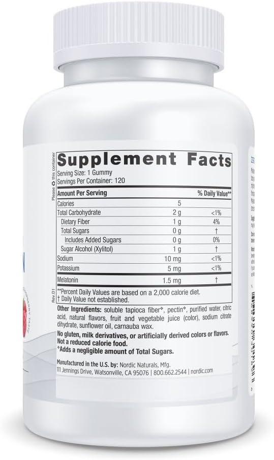 Nordic Naturals Zero Sugar Melatonin Gummies, Raspberry – 60 Gummies – 1.5 mg Melatonin – Great Taste – Restful Sleep, Antioxidant Support – Non-GMO, Vegan – 60 Servings(120 Count (Pack of 1))